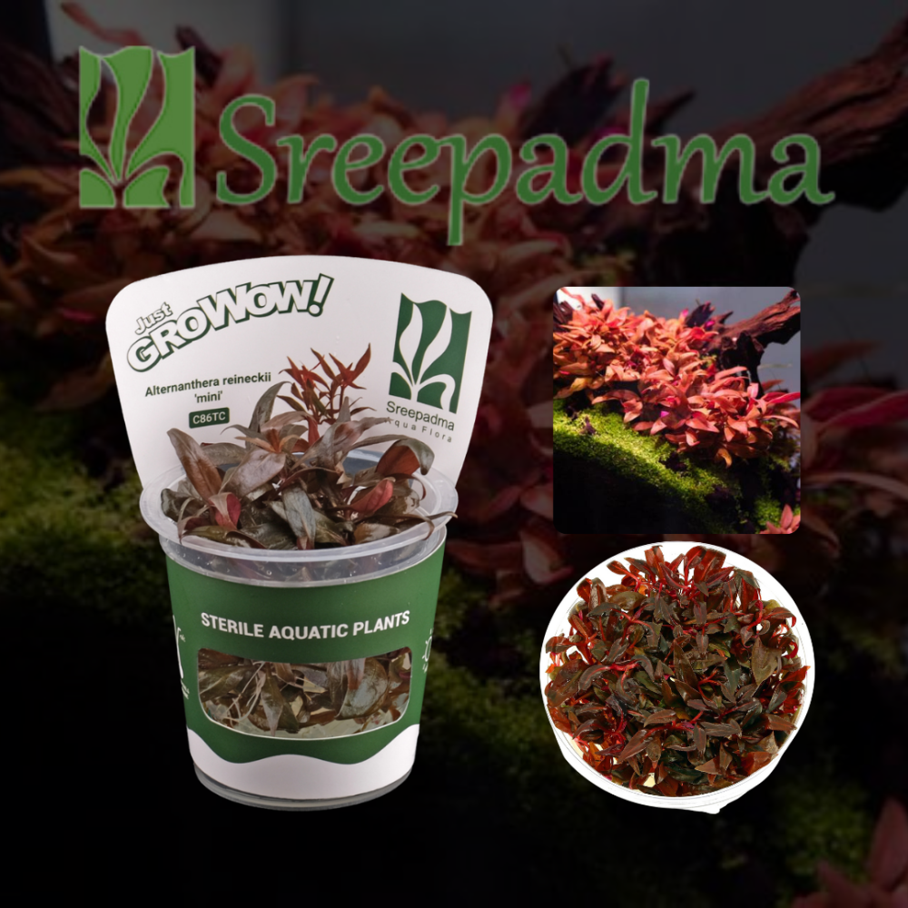 Mini is the dwarf variant of the well-recognized Alternanthyra Renecki. This plant is commonly used in Dutch waterscapes for its bright and vibrant red colors. Its micro-growth allows it to be used in both large and small aquariums as either a front, mid-earth, or rear plants. Like other stem plants, it requires medium to high light with carbon dioxide added for optimal growth. It can be planted or submerged and reaches 8 inches long.