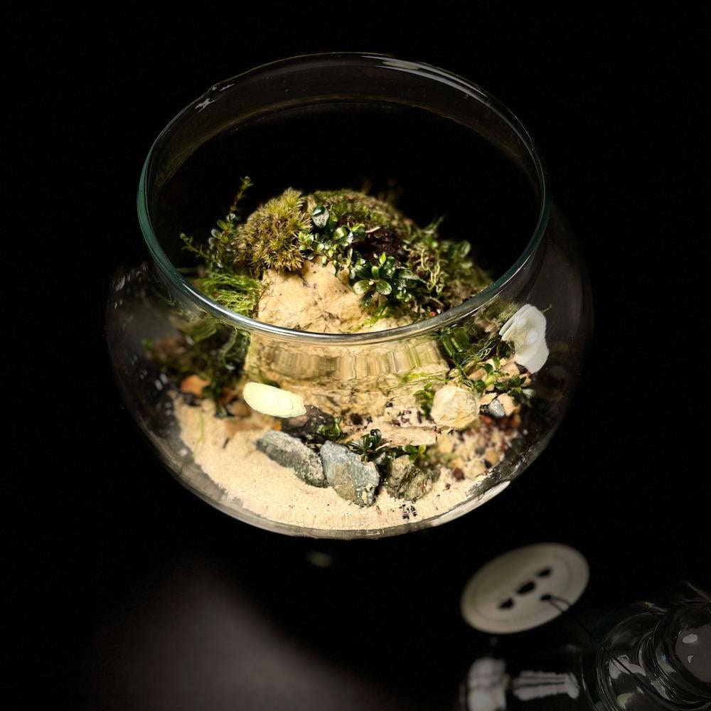Add a touch of nature to your home with a biologically active tropical terrarium, combining beauty and ecological balance in a unique design. This terrarium contains the perfect combination of: