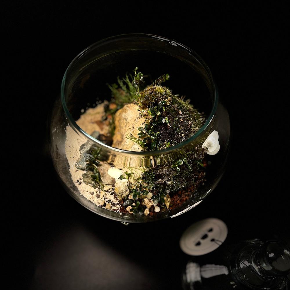 • Lighting: The terrarium needs indirect light. Preferably placed near a sunny window or use LED lighting suitable for plants.