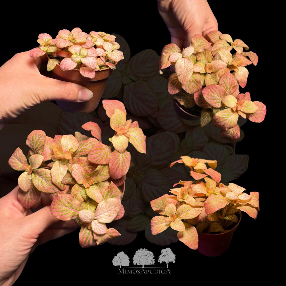The Pink Nerve Plant (Fittonia Albivenis ‘Pink Vein’) is a tropical beauty known for its soft green leaves adorned with delicate pink veins. This elegant foliage adds a cheerful, stylish touch to any space, making it a favorite among terrarium lovers and indoor plant collectors.